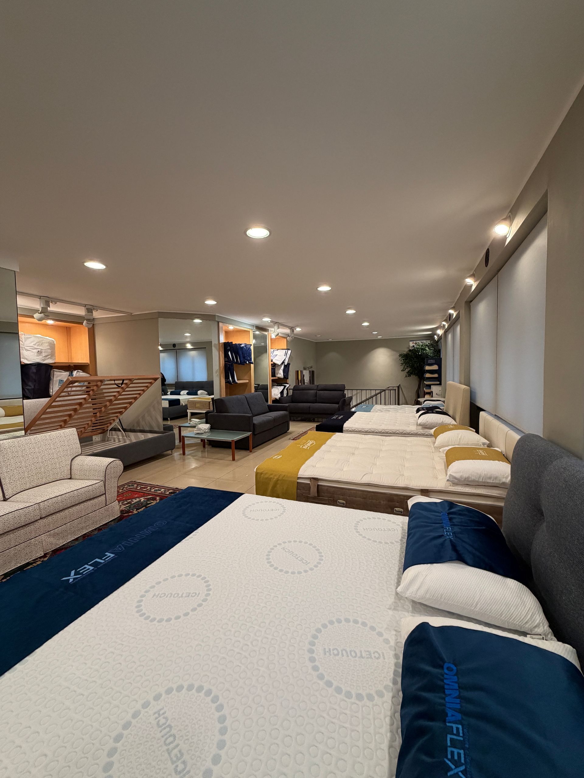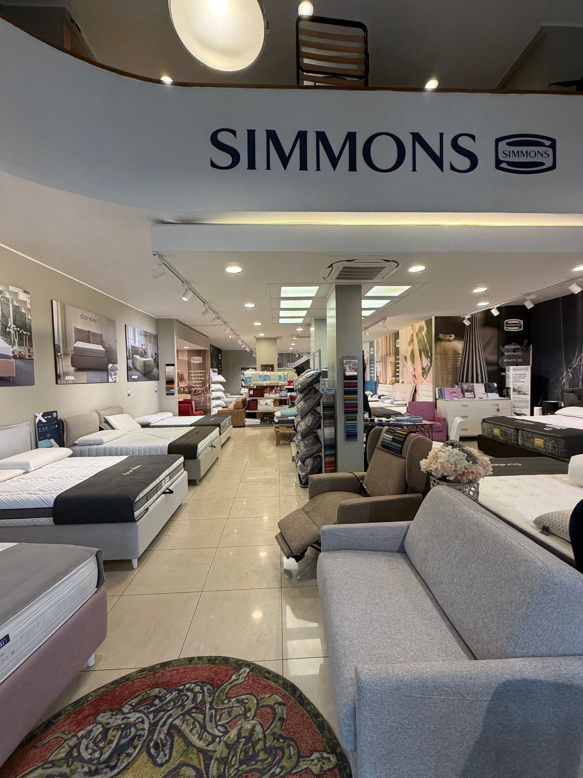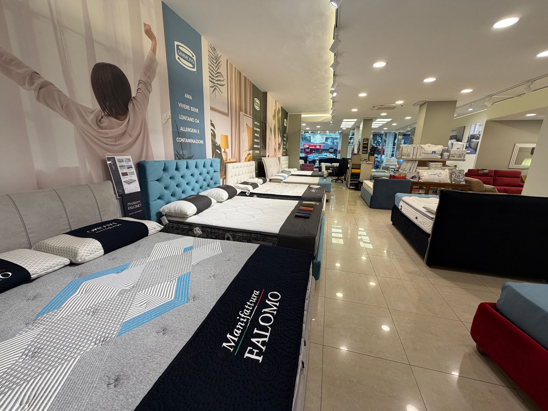 - Materassi e Letti: una vasta gamma di soluzioni firmate Simmons e Falomo, rinomati per le loro tecnologie avanzate e il comfort impareggiabile.