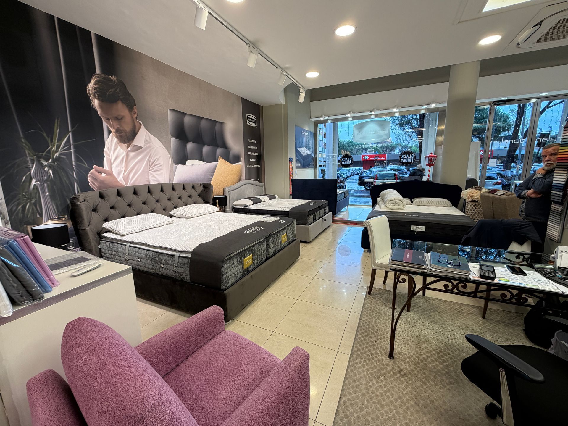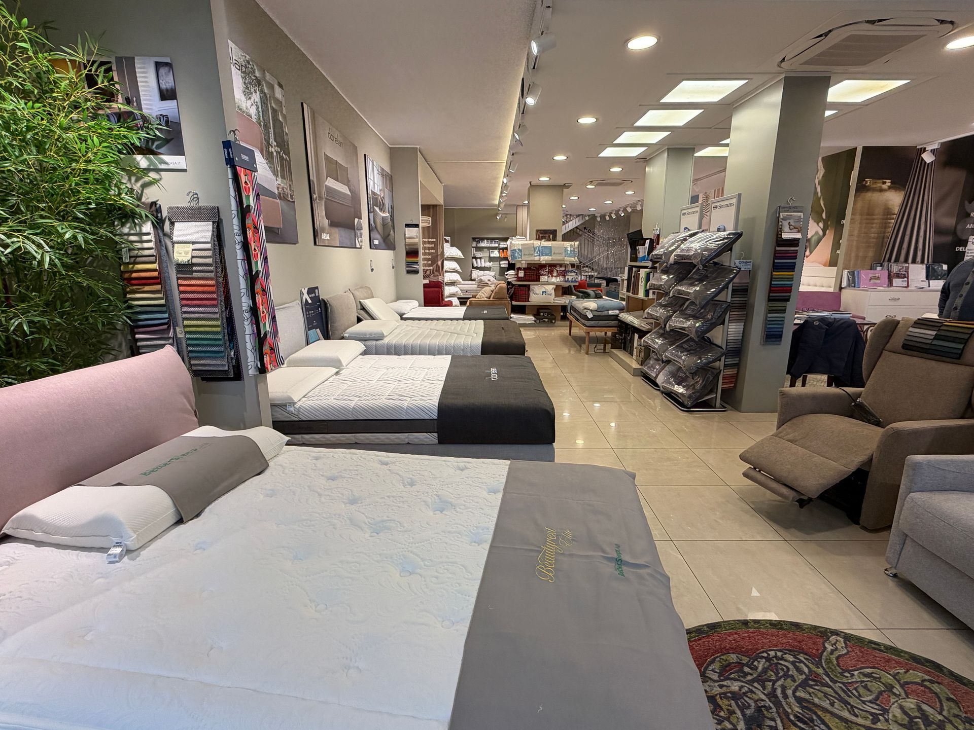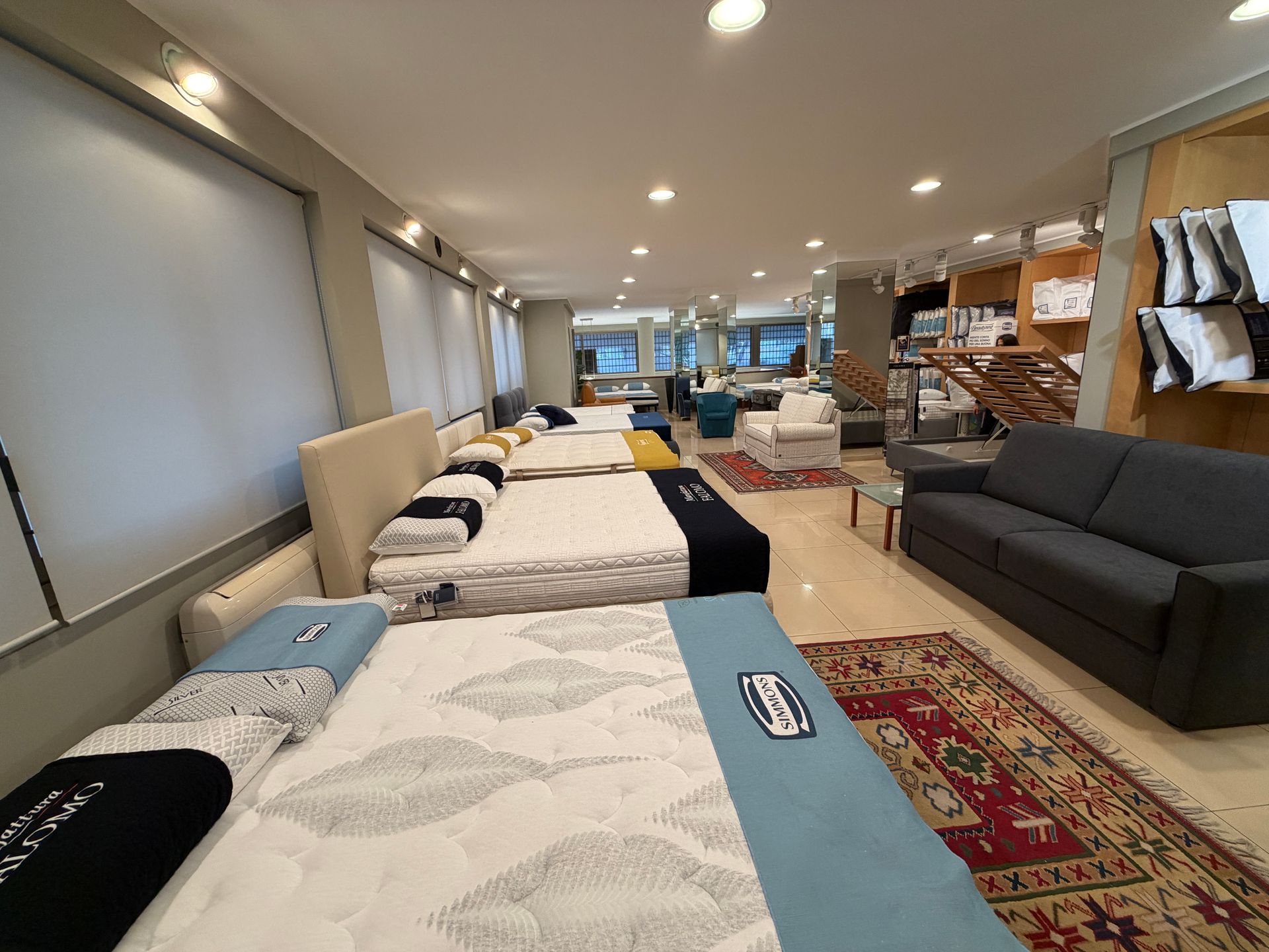 - Materassi e Letti: una vasta gamma di soluzioni firmate Simmons e Falomo, rinomati per le loro tecnologie avanzate e il comfort impareggiabile.